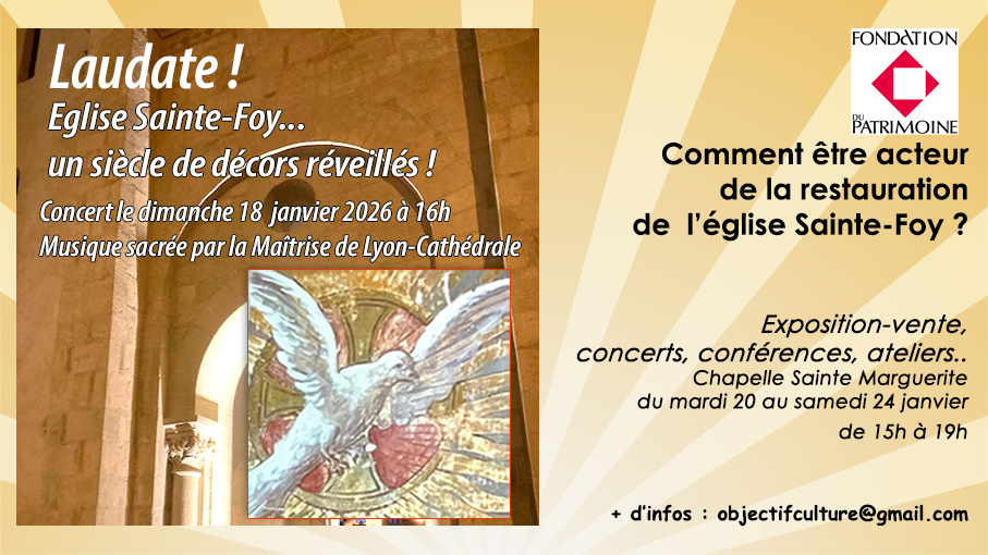 du 20 au 25 janvier 2026 – Sainte-Foy-lès-Lyon –Exposition-vente à la Chapelle Sainte-proposée par Objectif Culture La Fontanière Association il y a 1 semaine