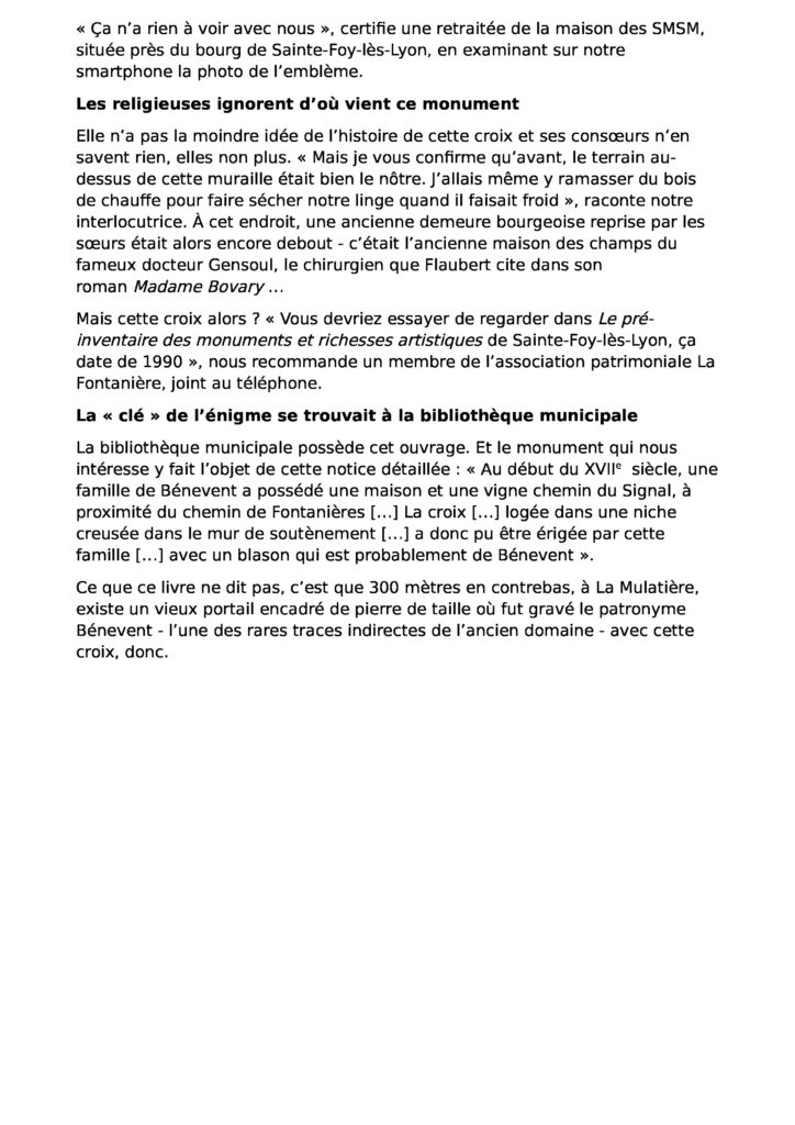 Sainte-Foy-lès-Lyon – Croix chemin du Grand Roule – Le Progrès – 8 octobre 2023