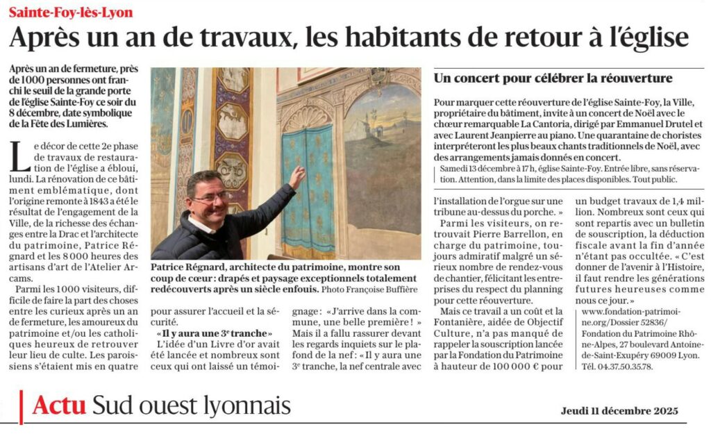 Sainte-Foy-lès-Lyon – La réouverture, le 6 décembre 2025, de l’église Sainte-Foy – Le Progrès – 11 décembre 2025