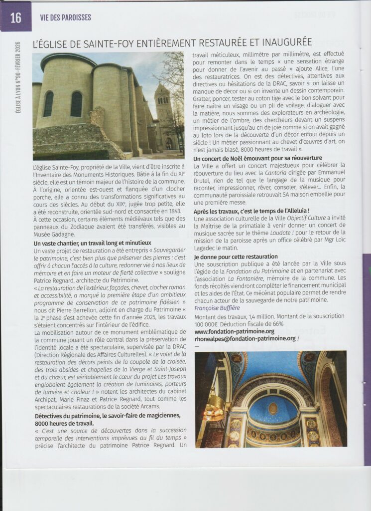 Sainte-Foy-lès-Lyon – L’église de Sainte-Foy entièrement rénovée et inaugurée – ÉGLISE À LYON – n° 90 – février 2026