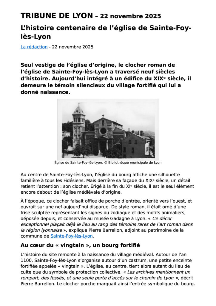 Sainte-Foy-lès-Lyon – L’histoire centenaire de l’église de Sainte-Foy-lès-Lyon – La Tribune de Lyon – 22 novembre 2025